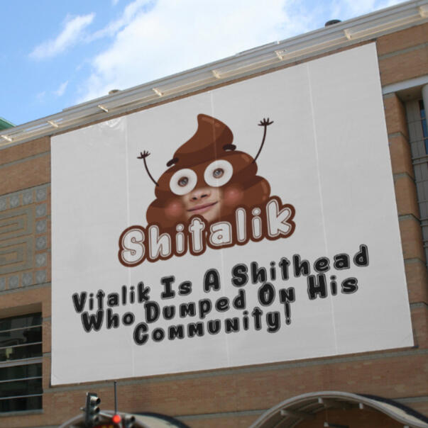 With the Shitalik Token, we want to raise enough money to start a mega advertising campaign and show the world that you can NOT dump on your community, extract 1 BILLION USD of someone elses wealth and excuse it with the fact that you did it for "charity."